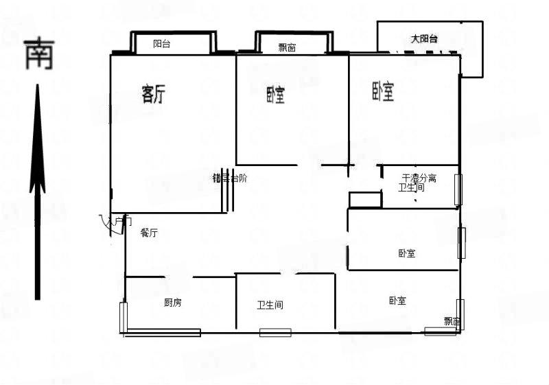 户型:4室 2厅2卫,二室1厅朝阳,南北通透,采光无遮挡